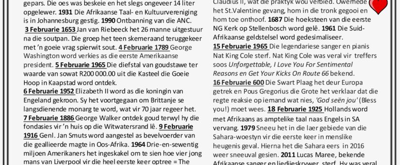 Februarie is baie meer as net rooi harte en liefdesverklarings! In werklikheid is Februarie propvol interessante geskiedenisfeite, eintlik te veel om op te noem! Hier is net ‘n paar…